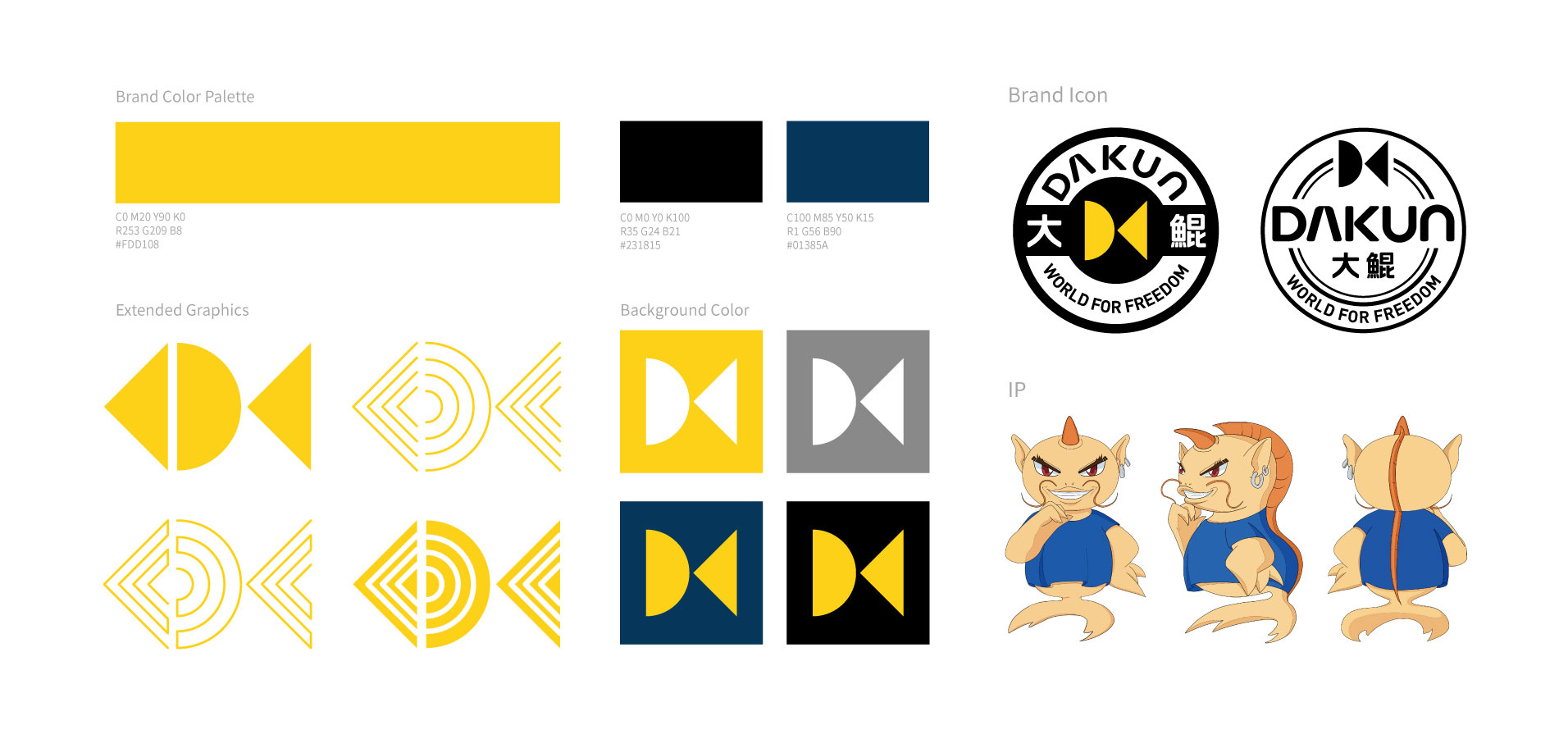 巧妙運用DK首拼音的設計手法,組合成抽象魚形!天圓地方,海闊天空,一只大魚自由翱翔,鯤的形象躍然而上。正是大巧若拙,大道至簡。