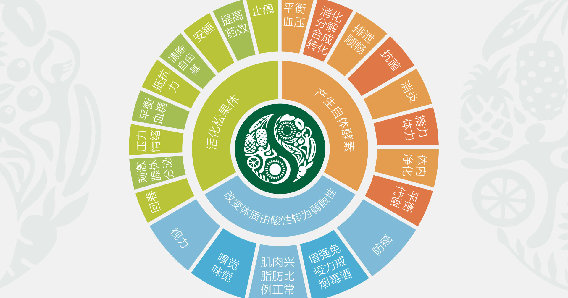 從大的需求方向,健康和美麗的需求。站在酵素原理自身,健康與美麗的需求是一體兩面的,是不可分開的。